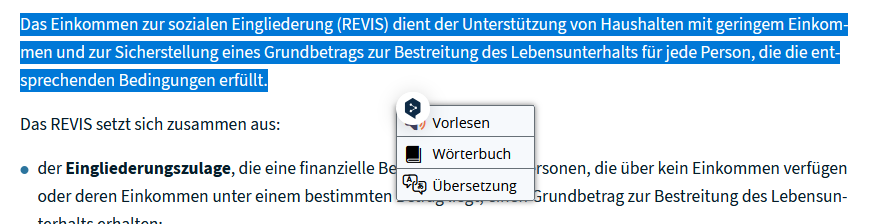 Ab sofort haben die Nutzer der Internetseite des nationalen Solidaritätsfonds die Möglichkeit : - die Texte der Seiten anzuhören - eine Definition eines Wortes zu sehen - sich den Text in mehr als 25 europäische und Weltsprachen übersetzen zu lassen...